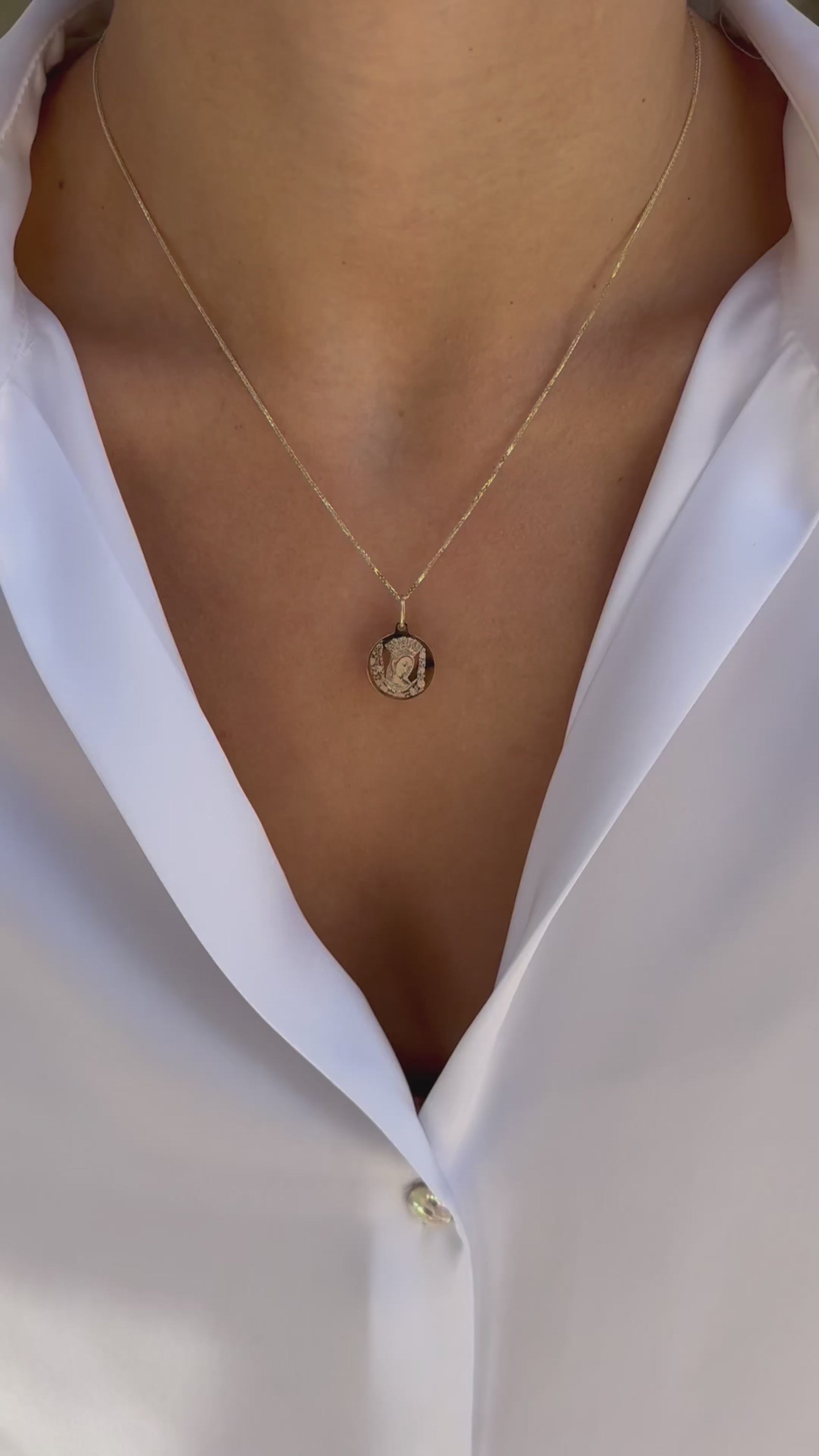 Zlatna ogrlica s likom Gospe Sinjske izrađena od 14k zlata, savršen dodatak za svakodnevno nošenje ili posebne trentuke - Zlatarna Vitić, Sinj.