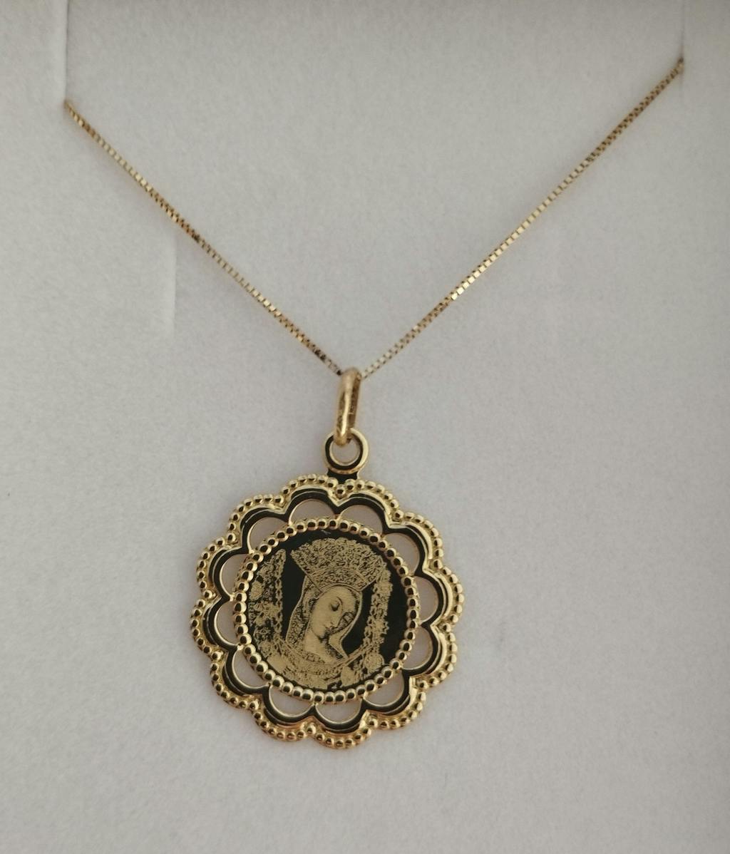 Zlatni privjesak s likom Čudotvorne Gospe Sinjske izrađen od 14kt zlata - bezvremenski komad nakita za svaku priliku, Zlatarna Vitić, Sinj.