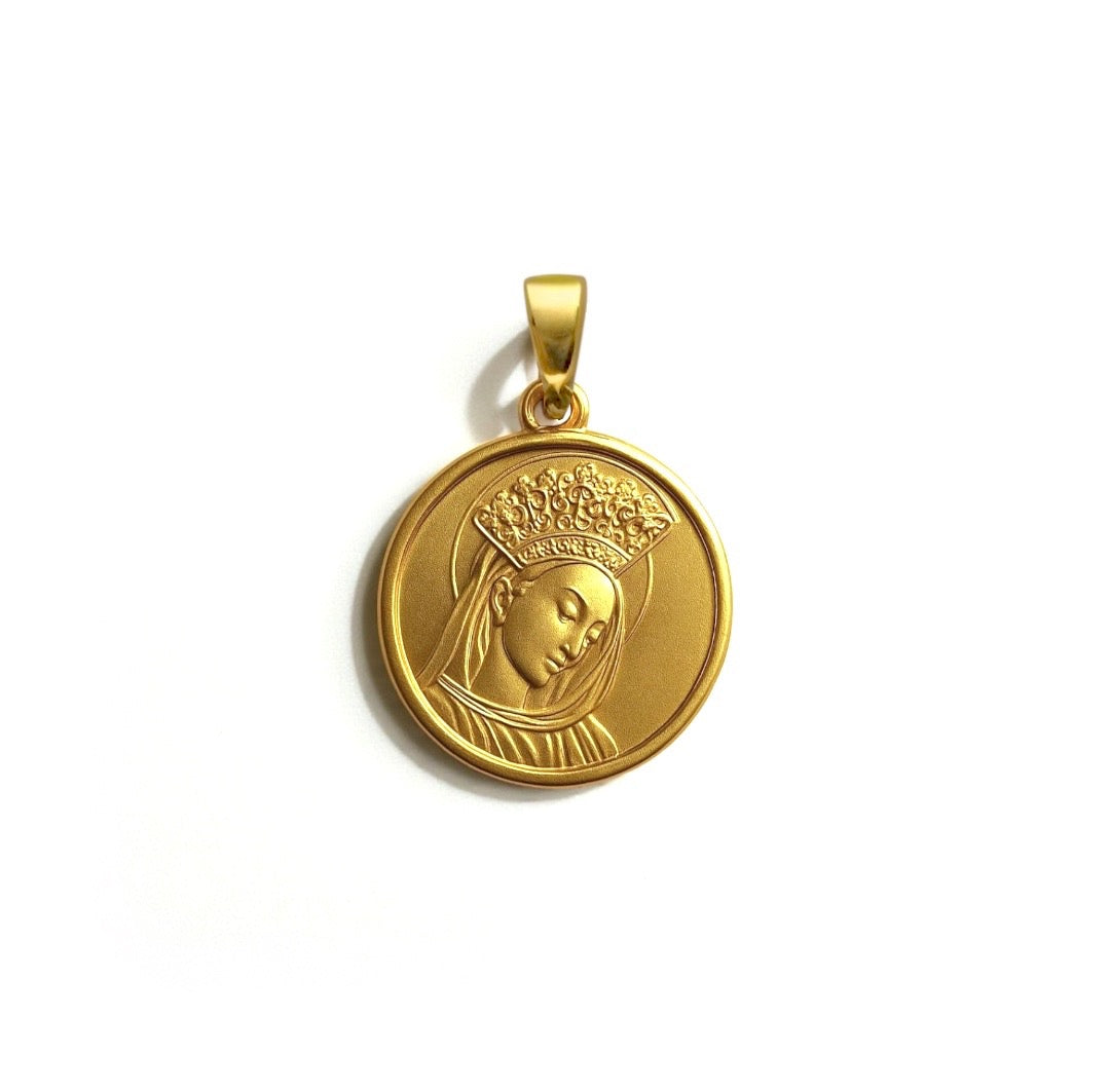 Zlatni okrugli privjesak Gospa Sinjska Reljef
