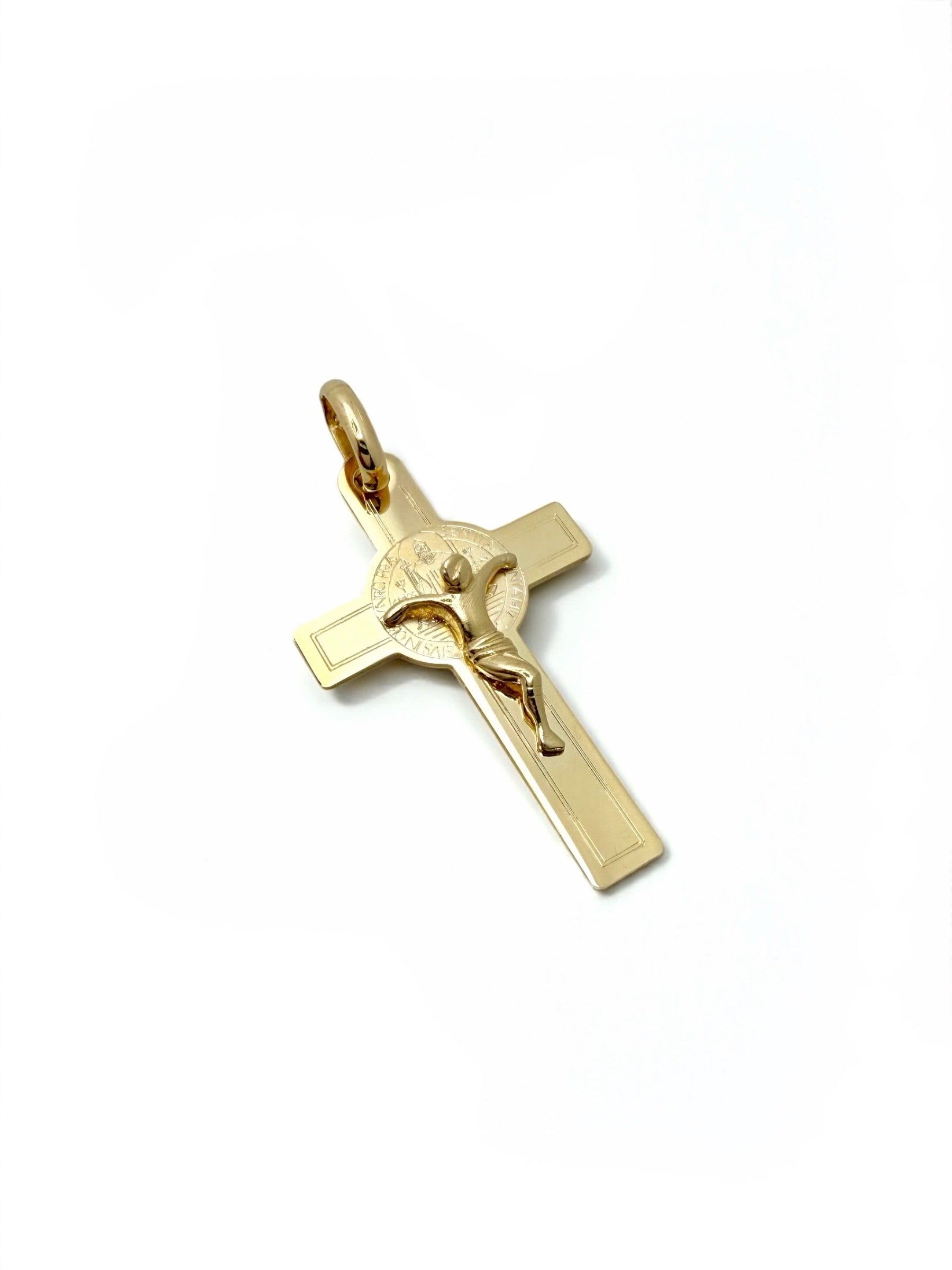 Zlatni privjesak križ s medaljonom Sv. Benedikta